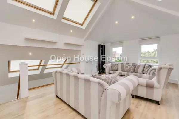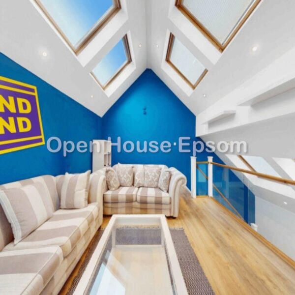 The property has a stunning mezzanine reception room, with skylights overlooking the kitchen and dining area.
