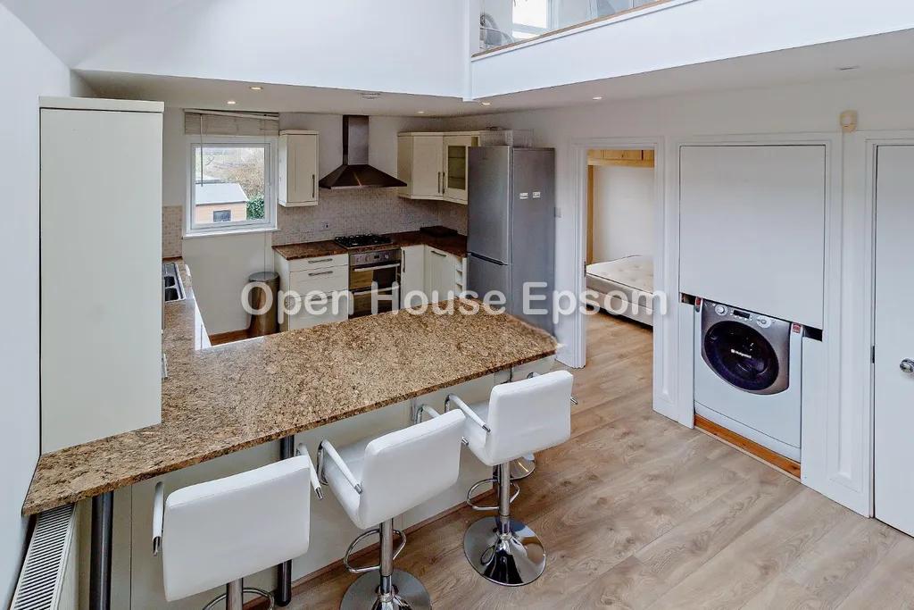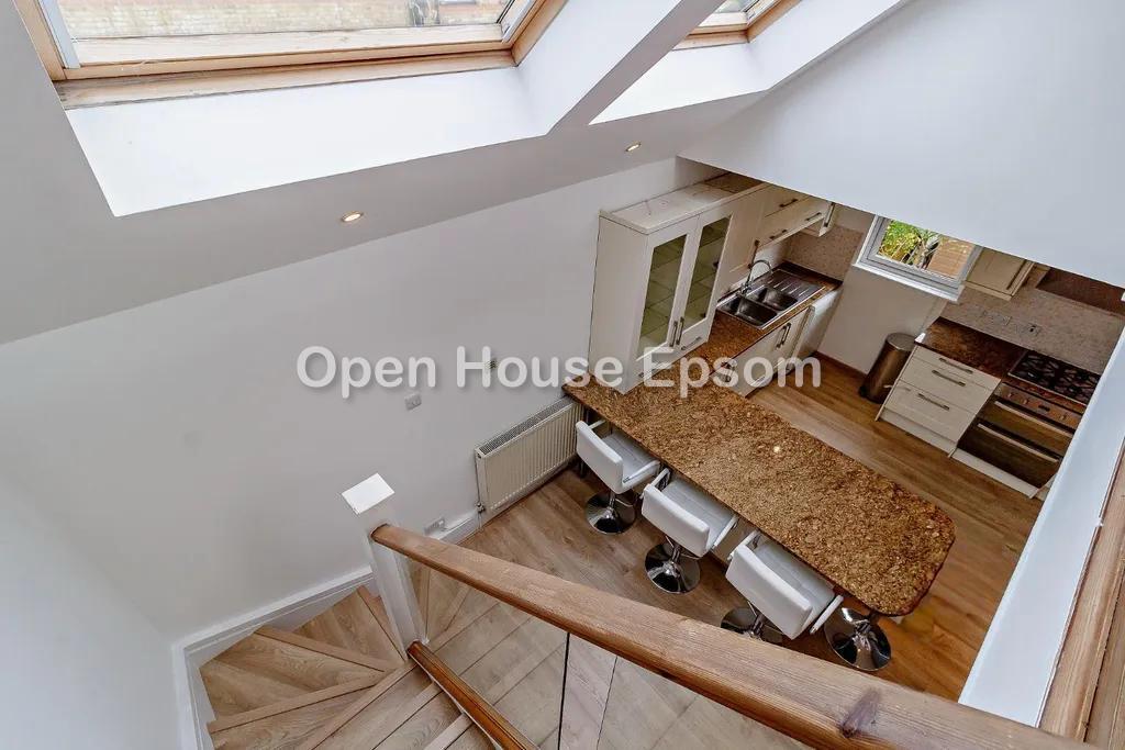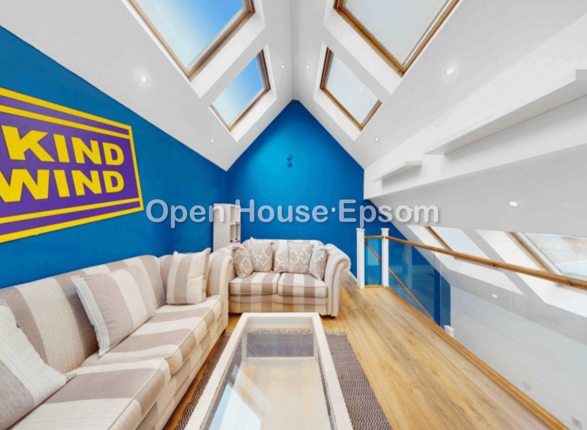 The property has a stunning mezzanine reception room, with skylights overlooking the kitchen and dining area.